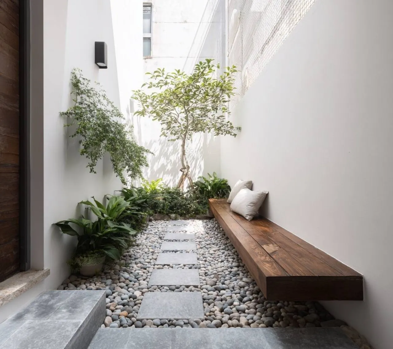 Use plants with varying leaf textures like Monstera, Snake Plants, and Ferns. These thrive in the Koh Samui climate and add a sense of depth to even the narrowest backyards.