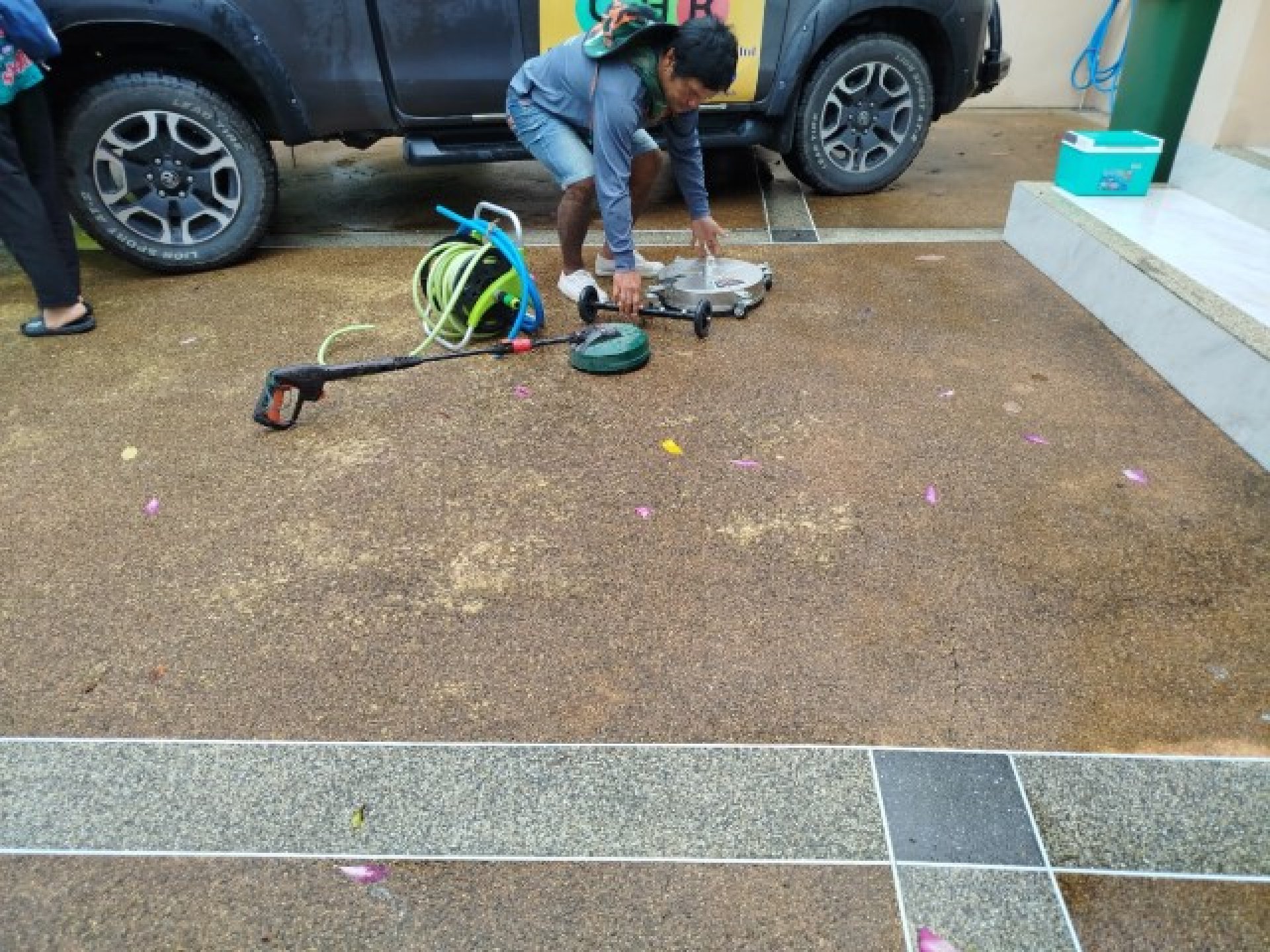 Not every surface can handle high pressure. For villa facades and delicate wood decking, we use "soft washing" techniques—combining eco-friendly cleaning agents with low-pressure water to kill mold spores at the root without damaging the material.