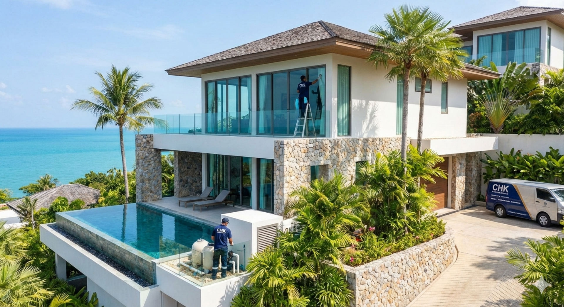 Would you like me to generate a high-quality image of a modern villa being professionally maintained in Koh Samui to accompany this article?